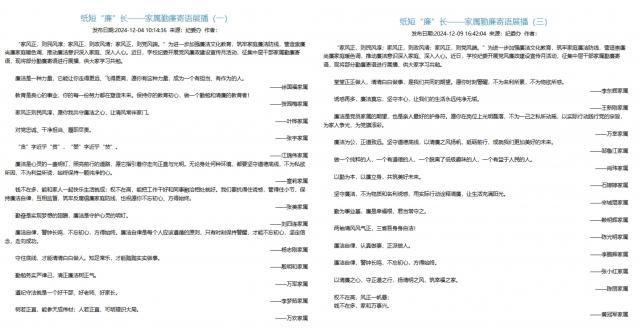 学校坚持从细从实,从小处着手,从实处着力,通过开展政治家访、政治谈话、中层干部家属书写勤廉寄语、开展现场警示教育和更新中层干部及纪检干部廉政档案等形式多样的廉洁教育活动,坚持分层级、面对面、抓重点的原则,垒砌防腐堤线,推动党风廉政建设宣传月活动走深走实,切实把活动成果转化为廉洁文化建设的内生动力。