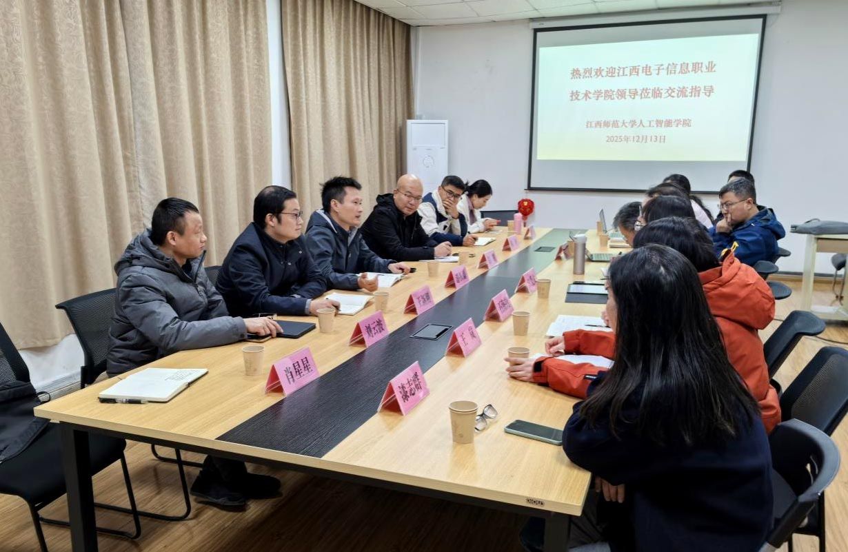 为学习高水平院校在服务企业数字化转型与人才培养方面的先进经验,12月13日下午,学校党委副书记、院长游振磊、副院长彭明率队赴江西师范大学人工智能学院开展专题交流学习。江西师范大学人工智能学院院长江爱文、副院长石海鹤及骨干教师代表热情接待了调研组一行。