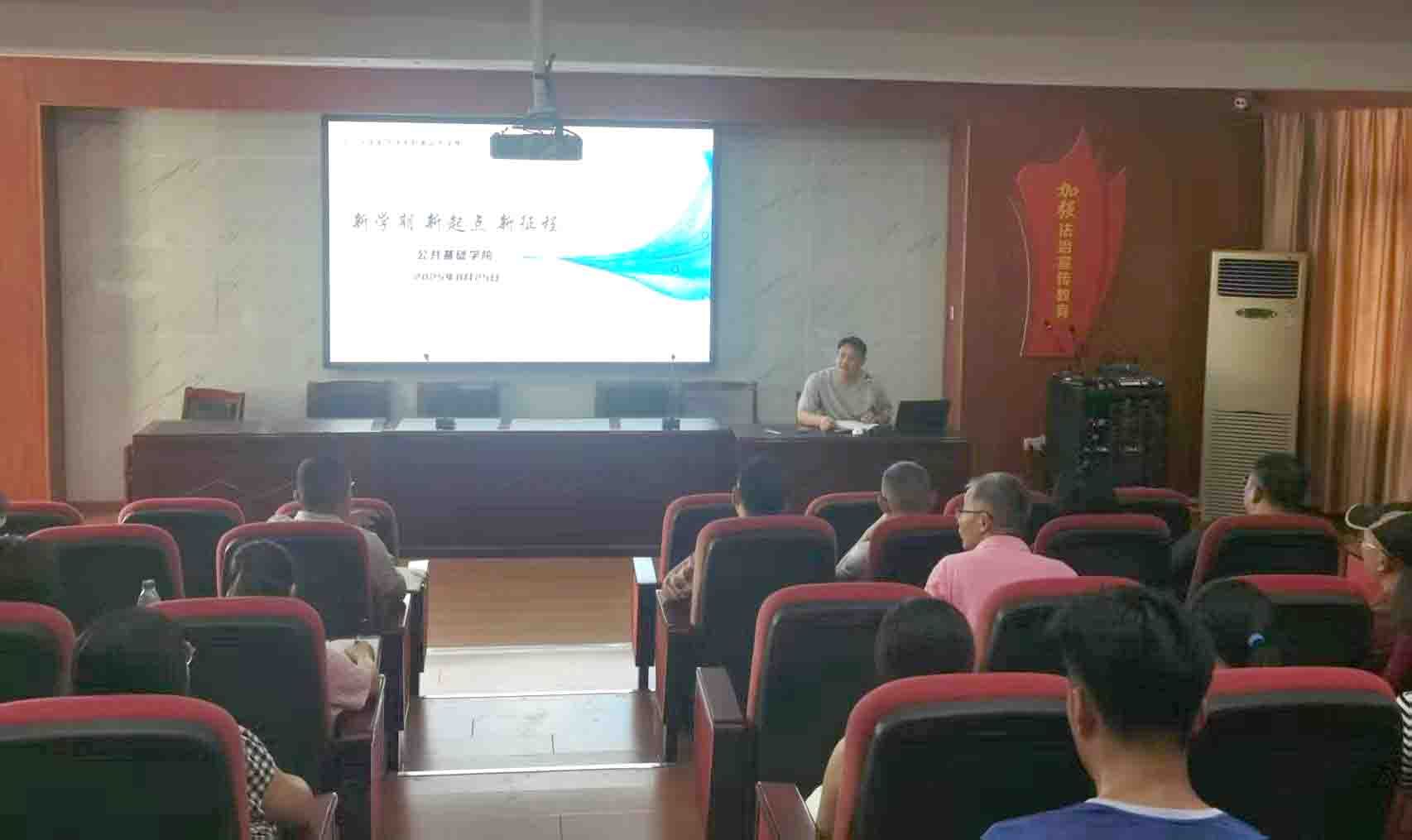 2025年8月25日下午,公共基础学院在高新校区教学楼四楼阶梯教室召开新学期全体教师大会。会议以“新学期、新起点、新征程”为主题,由学院院长江锦伟主持,学院全体专职教师以饱满的精神状态参加了此次会议。