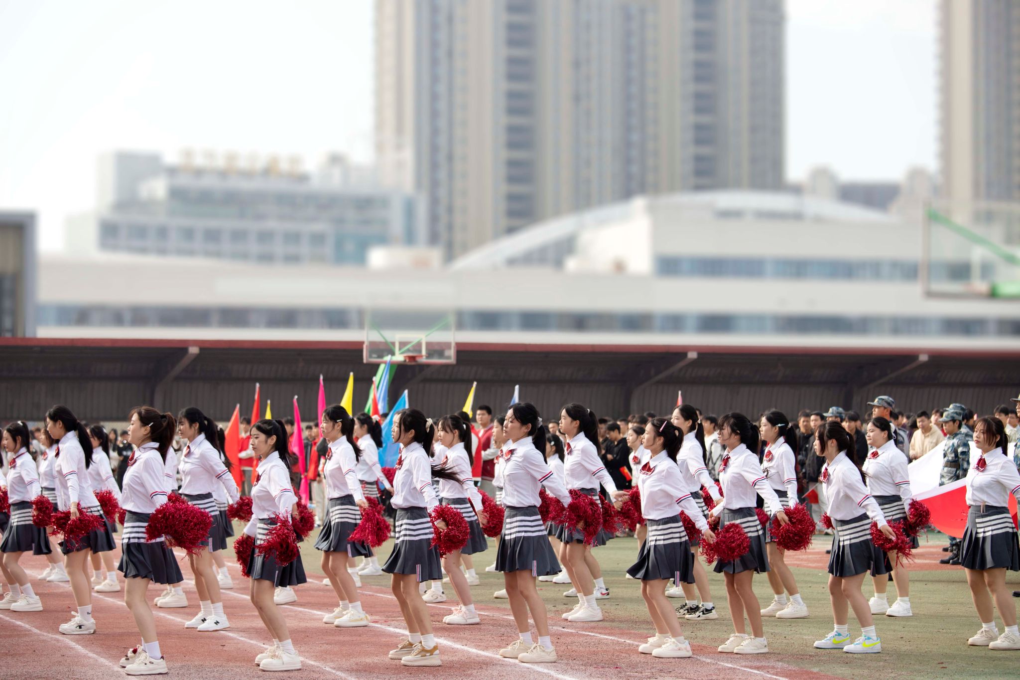 啦啦操方阵踩着明快鼓点,在高难度托举与整齐划一的动作间,释放着无限活力。