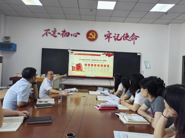 ​​​ 为深入贯彻中央八项规定及其实施细则精神,持续强化党风廉政建设和纪律作风建设,坚决纠治违规吃喝等不正之风,按照学校党委统一部署,6月30日上午,学校信息应用工程系党支部开展“深入贯彻中央八项规定精神 自觉抵制违规吃喝”专题组织生活学习研讨会。支部挂点领导、纪委书记江耀武出席会议并讲话。会议由支部书记石婷婷主持,全体党员参加会议。学校指导组江锦伟同志应党委委派列席指导会议。