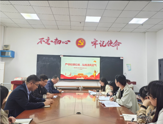 为深入践行习近平总书记关于加强党的作风建设的重要论述,全面落实中央八项规定及其实施细则精神,切实提升党员的纪律意识和工作作风,4月24日下午,信息应用工程系党支部开展“严守纪律红线,弘扬清风正气”主题党日活动,会议由支部书记石婷婷同志主持,支部全体党员参加会议,支部挂点领导、纪委书记江耀武出席会议并讲话。