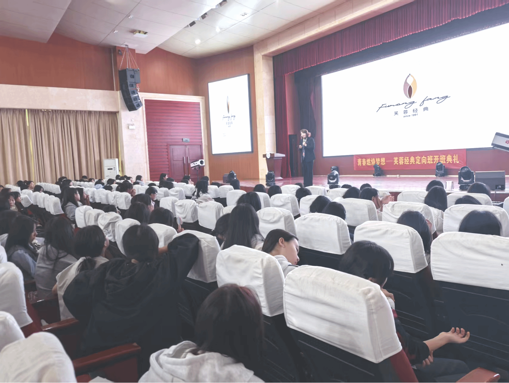 开班仪式上,文化创意学院院长赖恩和致辞。他首先代表学院对定向班的顺利开班表示热烈祝贺,并深入分析了当前文化创意与大美业融合的广阔前景,并指出,行业的迅猛发展带来了对高素质、高技能人才的迫切需求。他表示,此次与芙蓉经典这样的标杆企业共建定向班,是深化产教融合的关键一步,学院将全力协同企业,整合优质资源,共同为学生打造一个理论结合实践的一流学习平台。