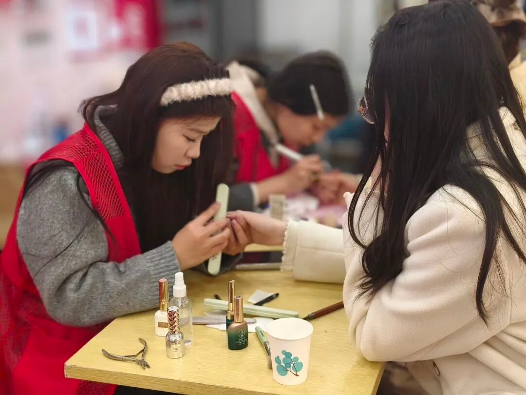 在温馨的修甲护甲服务区,文化创意学院的志愿者们准备了专业的修甲工具和消毒用品,细心为社区老人和居民提供手部护理服务。他们一边修剪指甲、去除死皮,一边与居民亲切交谈,现场氛围温馨融洽。小小的指甲刀,不仅修出了整洁,更修出了温情。一旁的肩颈按摩服务区同样人气高涨,志愿者们运用娴熟的手法为社区老人舒缓肩颈疲劳,耐心讲解日常保健知识,贴心的服务赢得居民连连称赞。