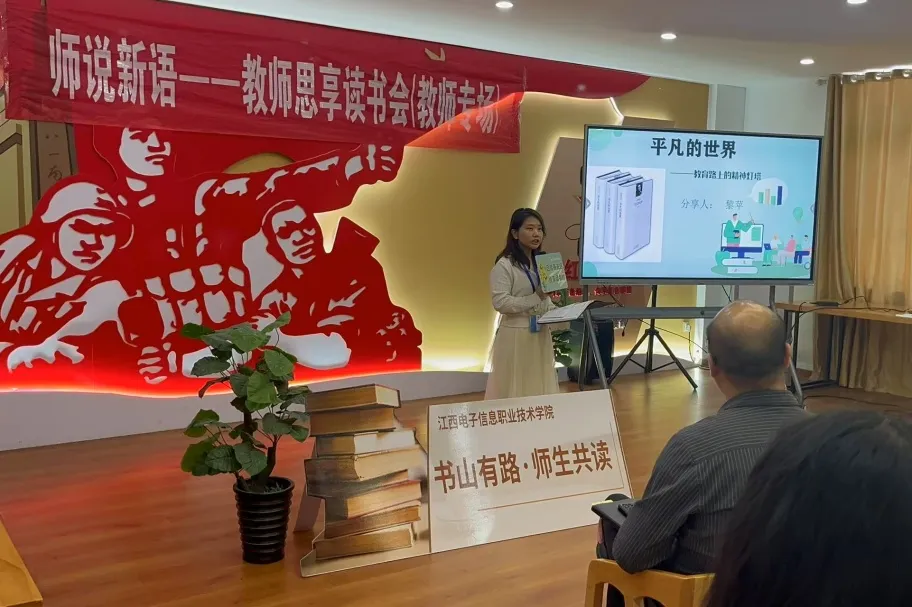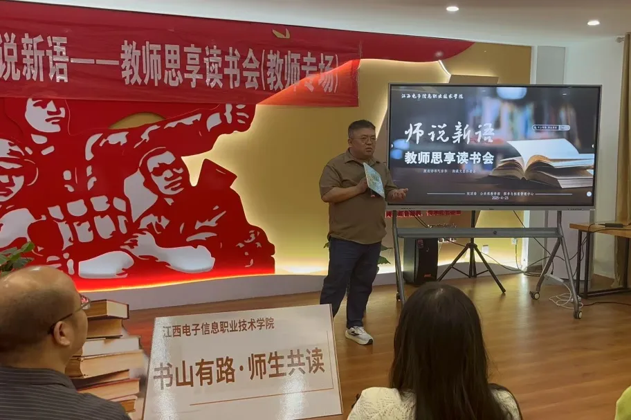 4月23日世界读书日,学校团委、公共课教学部、图书与档案管理中心联合举办“书山有路·师生共读”读书月教师专场活动——“师说新语”教师思享读书会。本次活动以教师为主体,14位教师携经典书籍登台分享,20名学生代表现场观摩,共同开启了一场跨越时空的思想对话与心灵共鸣。