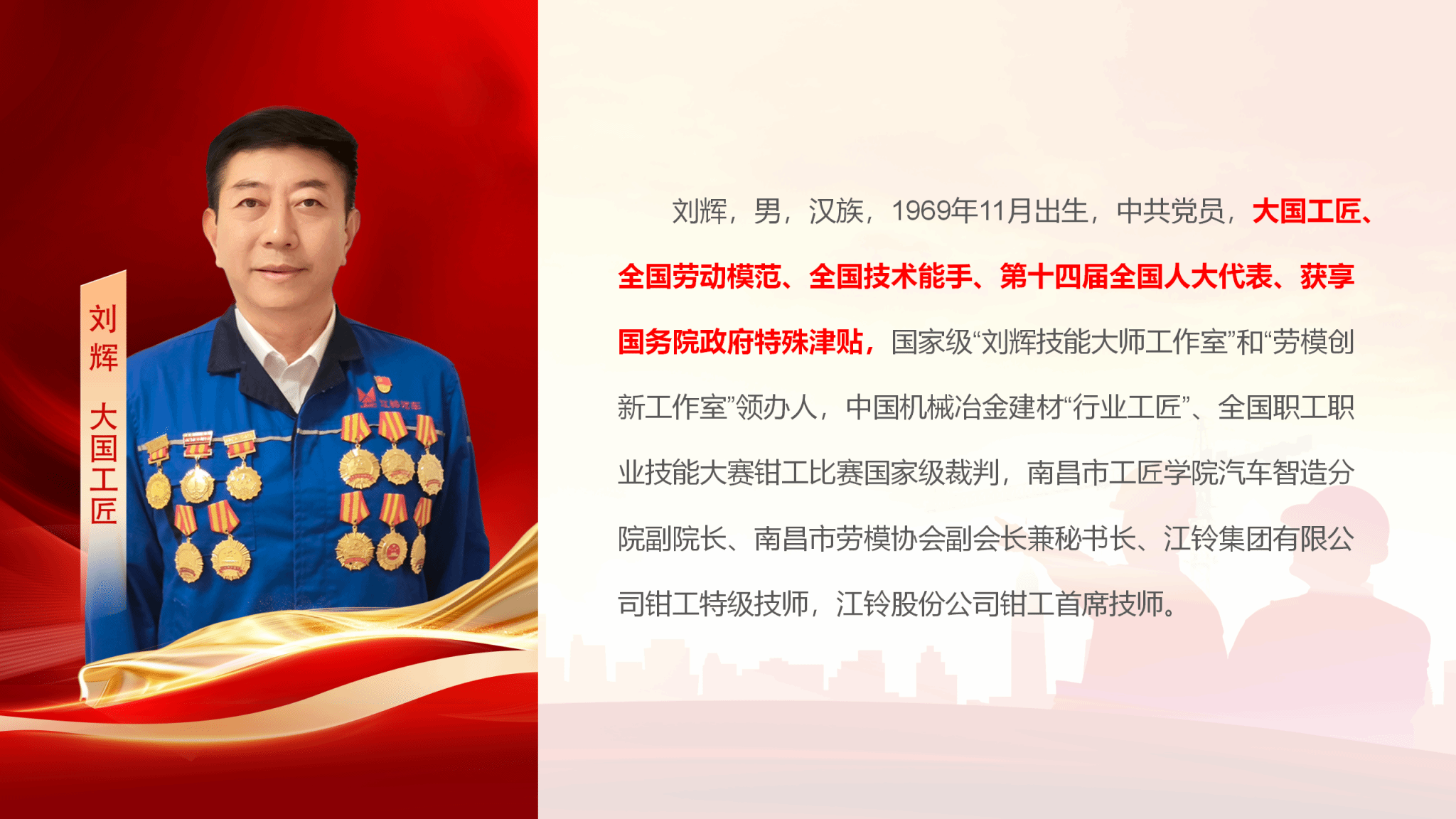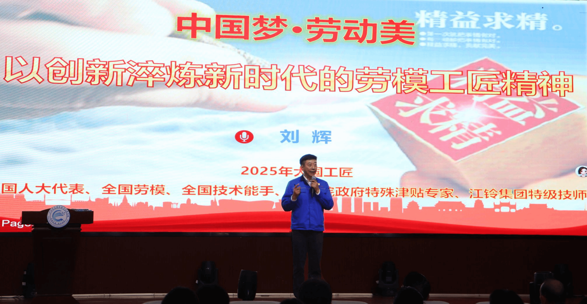大国工匠、全国劳模、全国技术能手、全国人大代表、国务院政府特殊津贴专家、江铃集团特级技师刘辉同志莅临我校,为师生带来一场熔铸匠心精魂、点燃奋进之志的精神盛宴。江西省教育工会干部熊敏敏,学校党委书记肖红秋出席活动,450余名师生代表现场聆听。
