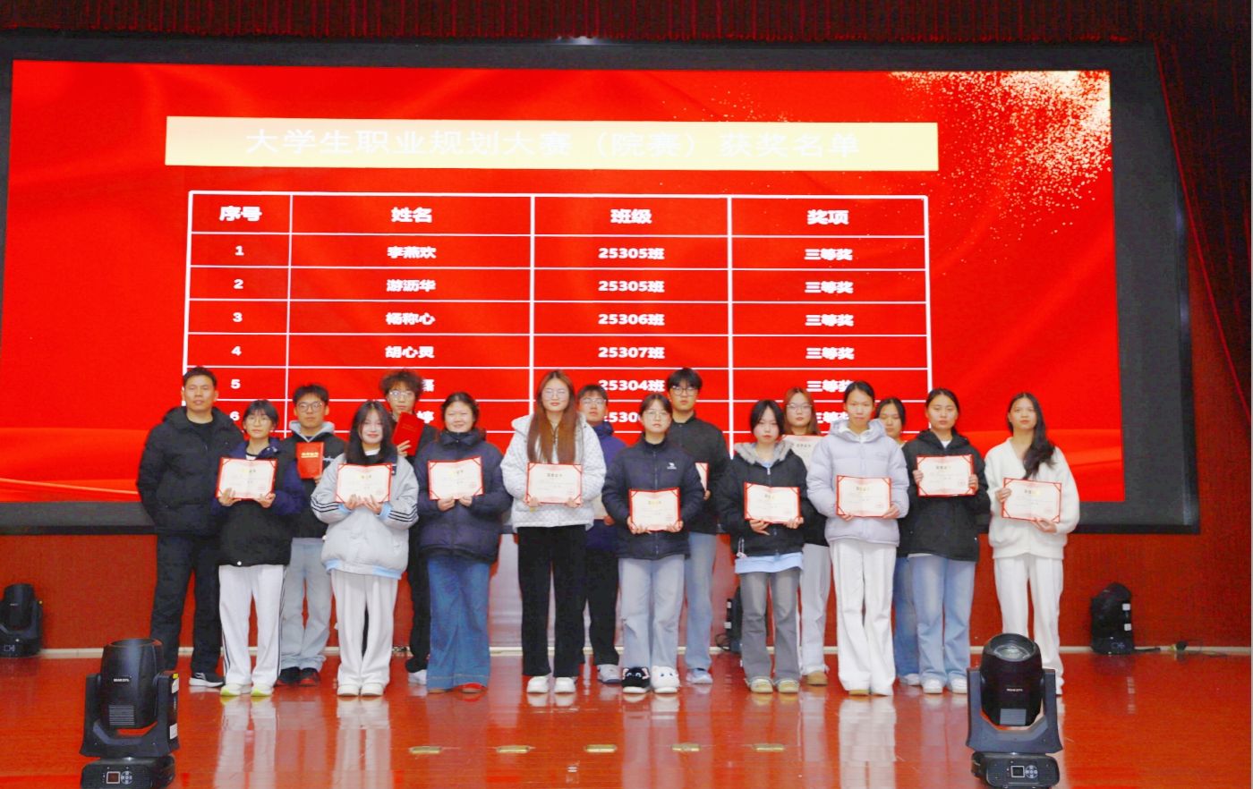 大会还隆重举行了颁奖仪式,为在2025年江西省职业院校技能大赛、校级大学生职业规划大赛、院徽设计比赛、校级技能竞赛节等各类赛事中斩获优异成绩的学生颁发荣誉证书,予以鼓励。