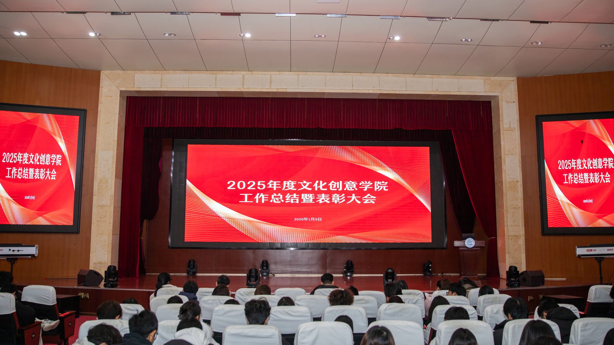 2026年1月9日,文化创意学院在学术报告厅召开2025年度工作总结暨表彰大会。学院领导、教研室主任、专业教师以及全体高职学生参加了会议。