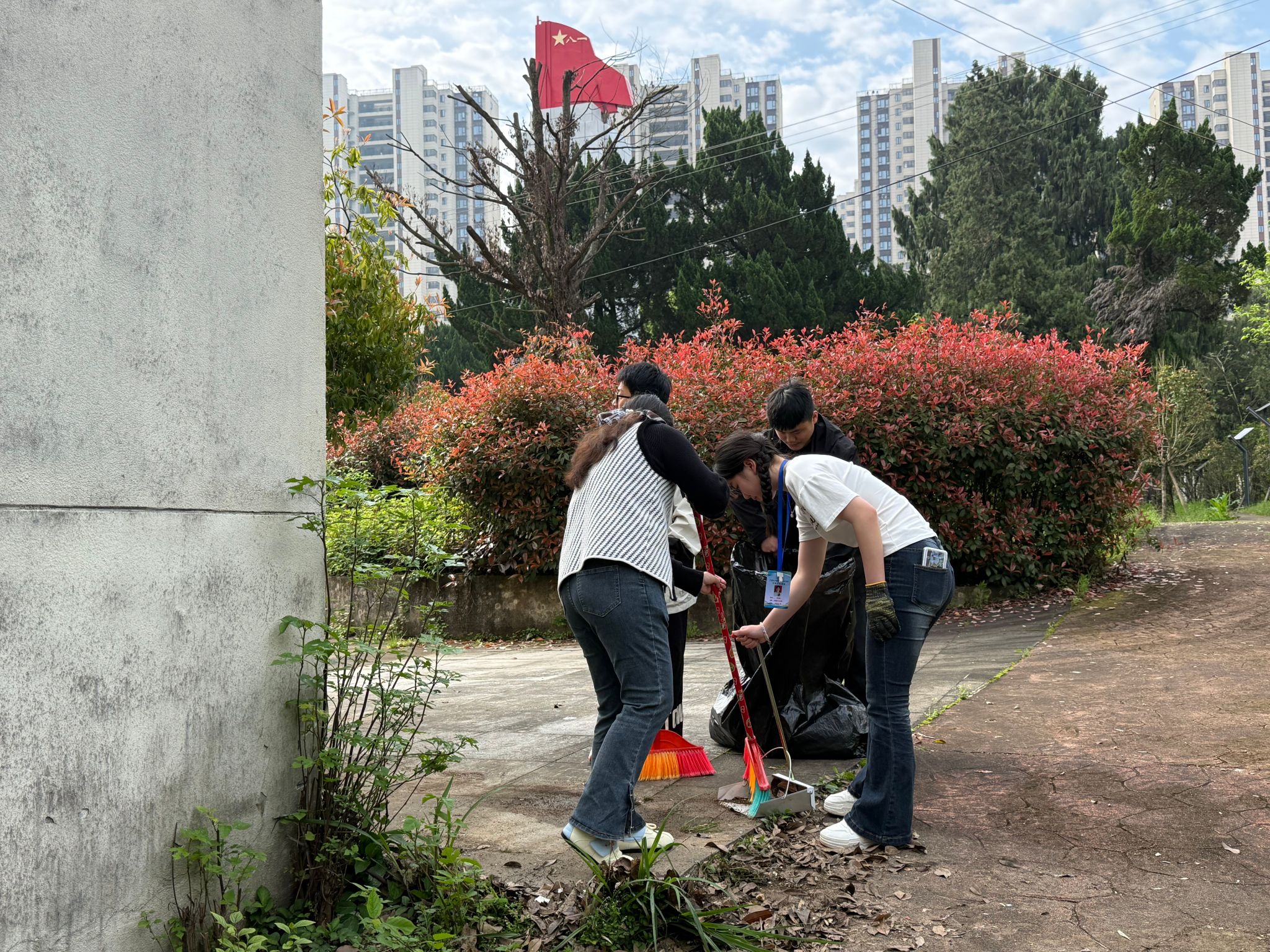 国歌声毕,在场人员肃立默哀缅怀先烈,师生、团员及社团代表依次敬献花圈、鲜花与自制非遗纸花,并集体行三鞠躬礼。全体团员庄严宣誓,向革命英烈致以最崇高的敬意与最深切的哀思。随后的清扫环节,师生们分组协作,细致清理杂草落叶、捡拾垃圾、擦拭烈士墓碑,以实际行动表达对先烈的缅怀与敬意。