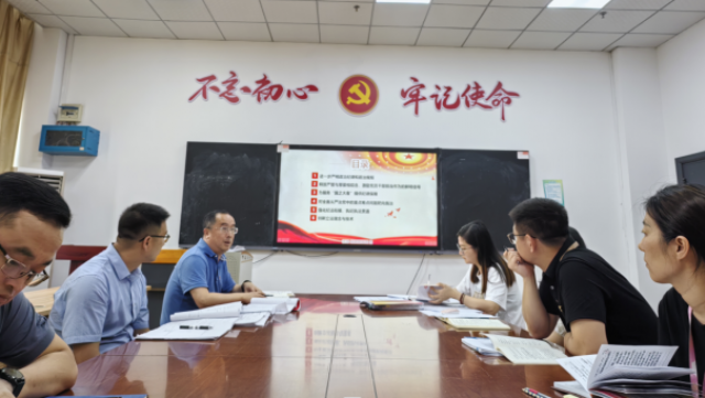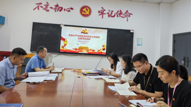 会上,石婷婷同志领学了《认真学习贯彻习近平总书记关于意识形态工作的重要论述》《省级党员领导干部党纪学习教育读书班开班 尹弘在开班式上讲话》,并传达学习了《关于转发< 关于认真学习领会习近平总书记关于全面加强党的纪律建设的重要论述 扎实开展党纪学习教育的通知>的通知》《关于转发< 党纪学习教育有关问题答复(三)>< 党纪学习教育工作提示(一)(二)>的通知》等文件精神。同时,分析研判了2024年上半年支部意识形态工作,就存在的不足及下半年工作举措作了部署安排,并表示会严格按照学校党委的工作要求认真落实意识形态工作责任制。