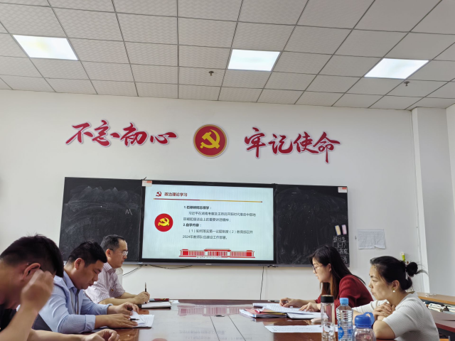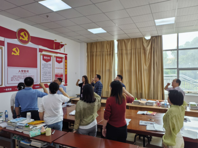 会上,石婷婷同志首先学习传达了习近平总书记考察湖南及在主持召开新时代推动中部地区崛起座谈会上的重要讲话精神,传达了学校党委有关开展国家安全、党纪学习教育等文件和会议精神。其次,对开展党纪学习教育作了动员部署。石婷婷同志领学了中共中央办公厅印发《关于在全党开展党纪学习教育的通知》和《中央党的建设工作领导小组召开会议研究部署党纪学习教育工作》等文件精神,并对开展好学习教育提出了具体要求。根据工作实际,支委邬万荣同志、王扬同志分别领学了《中国共产党纪律处分条例》部分内容,纪检委员吴桂华同志领学《中央纪委国家监委部署开展群众身边不正之风和腐败问题集中整治》有关文件精神;宣传委员孙淑芬同志领学了《中央点名通报3起典型问题》《江西6名干部被通报》等勤廉警示教育相关内容,万琳达、郭慧敏等同志将党纪教育学习与自身工作深入结合,进行了分享交流。支部还组织了本月政治生日党员发表感言,并开展了重温入党誓词活动。