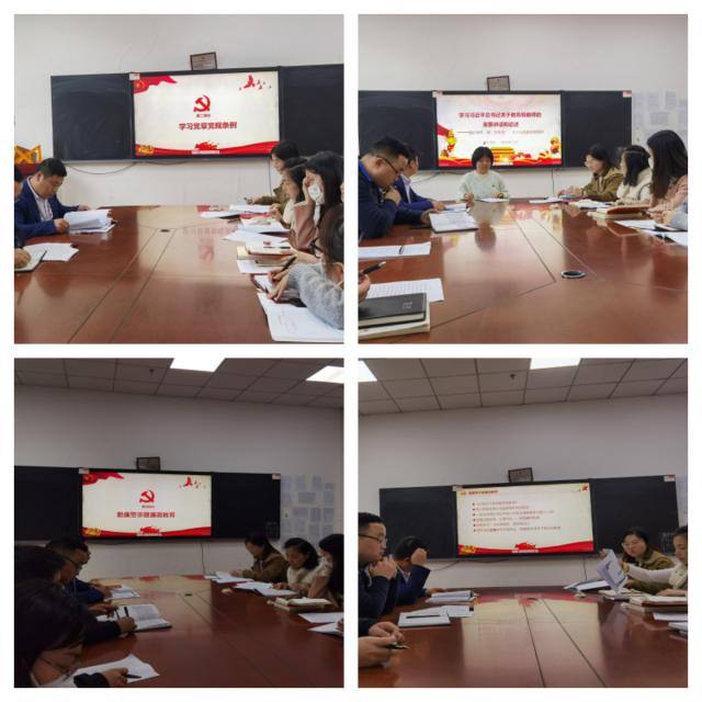 支部组织委员、宣传委员、纪检委员以及青年党员代表分别作了重要内容领学:支部组织委员邬万荣领学了省国资委《关于学习〈中国共产党党徽党旗条例〉的工作提示》和《党章》第七章党的纪律、入党誓词的演变过程等内容,进一步加强了学习宣传教育,增强纪律意识和责任感;支部宣传委员孙淑芬围绕习近平总书记关于教育和教师的重要讲话和论述开展党课学习,进一步加深了大家对党的教育方针的认识和理解。支部纪检委员吴桂华领学了勤廉警示暨廉政教育等有关内容,通过视频+案例的方式,让全体人员接受了一次触及思想、触及灵魂的思想教育和精神洗礼。青年党员王扬领学了加强青年党员干部纪法教育等内容,进一步增强大家的廉洁自律意识,提高了自我约束能力。