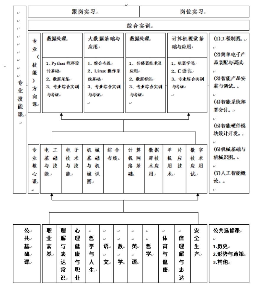 专业核心课程主要包括Python 程序设计基础、数据处理、数据标注、C语言、计算机视觉基础与应用、智能硬件模块设计开发。