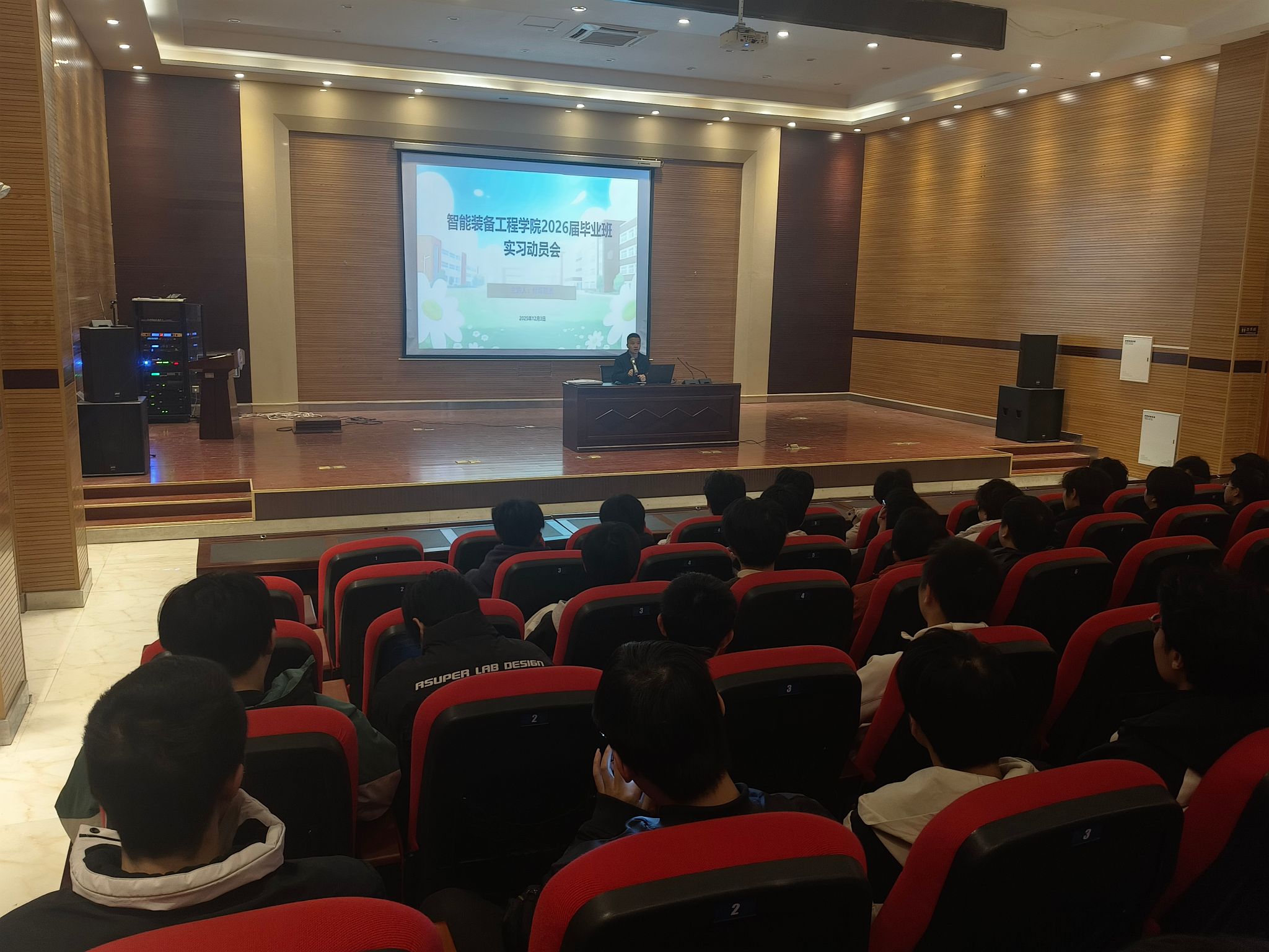 为扎实推进2026届毕业生实习工作,引导学生明确实习目标与任务,12月4日下午,智能装备工程学院在湾里校区隆重召开2026届毕业班实习动员大会暨岗前培训,学院2026届毕业班学生代表参会,会议由学院负责人付晖主持。