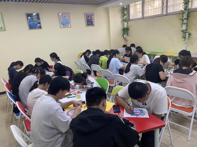 5月21日,“探索心光”曼陀罗绘画团辅活动突破传统心理辅导模式,通过色彩疗愈技术引导40名参与者在90分钟内完成“绘画-冥想-分享”三重体验。朱杏丽老师运用积极心理学原理,指导学生在几何图案填色过程中建立内在秩序感。“原本杂乱的思绪随着笔尖流动变得清晰”,参与学生的反馈印证了艺术疗愈对情绪调节的独特价值。