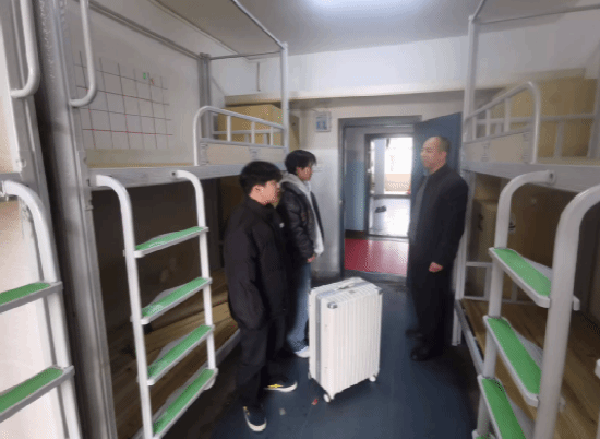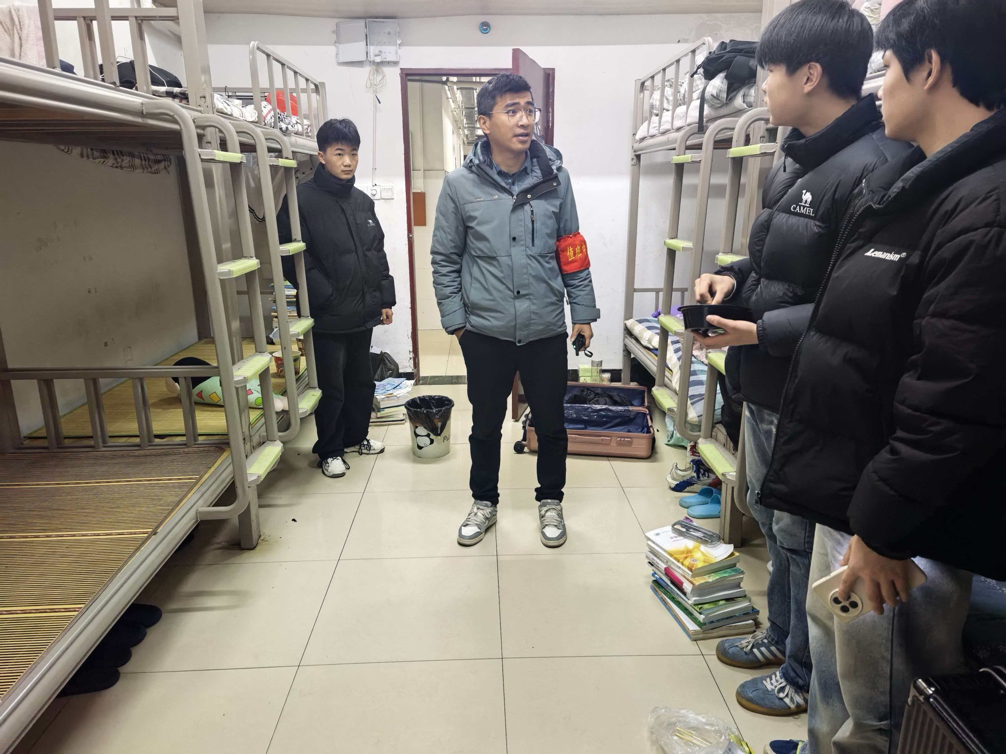 走访中,聚焦宿舍用电安全、消防通道、卫生环境等情况,细致排查私拉乱接电线、使用大功率电器等违规行为,反复强调 “人走断电”、“严禁吸烟” 等安全要求,切实将安全底线筑牢守实。刘新星在检查中强调,宿舍是学生在校生活的“第一阵地”,安全是底线,服务是保障,要持续深化宿舍安全常态化管理。陈红则要求以学生需求为导向,细化服务举措,让宿舍成为有温度的育人空间。同学们纷纷表示,院领导的走访让大家倍感温暖,将迅速调整状态收心归位,严格遵守宿舍管理规定,以饱满的精神面貌投入新学期学习生活。
