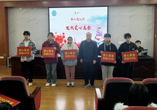 2025年1月8日下午,学校团委在五楼阶梯教室组织开展一年一度“爱心基金”发放仪式,及时传递学校的关怀与慰问。学校纪委书记江耀武出席仪式并为学生发放爱心基金,班主任代表和127名受助学生参加活动。