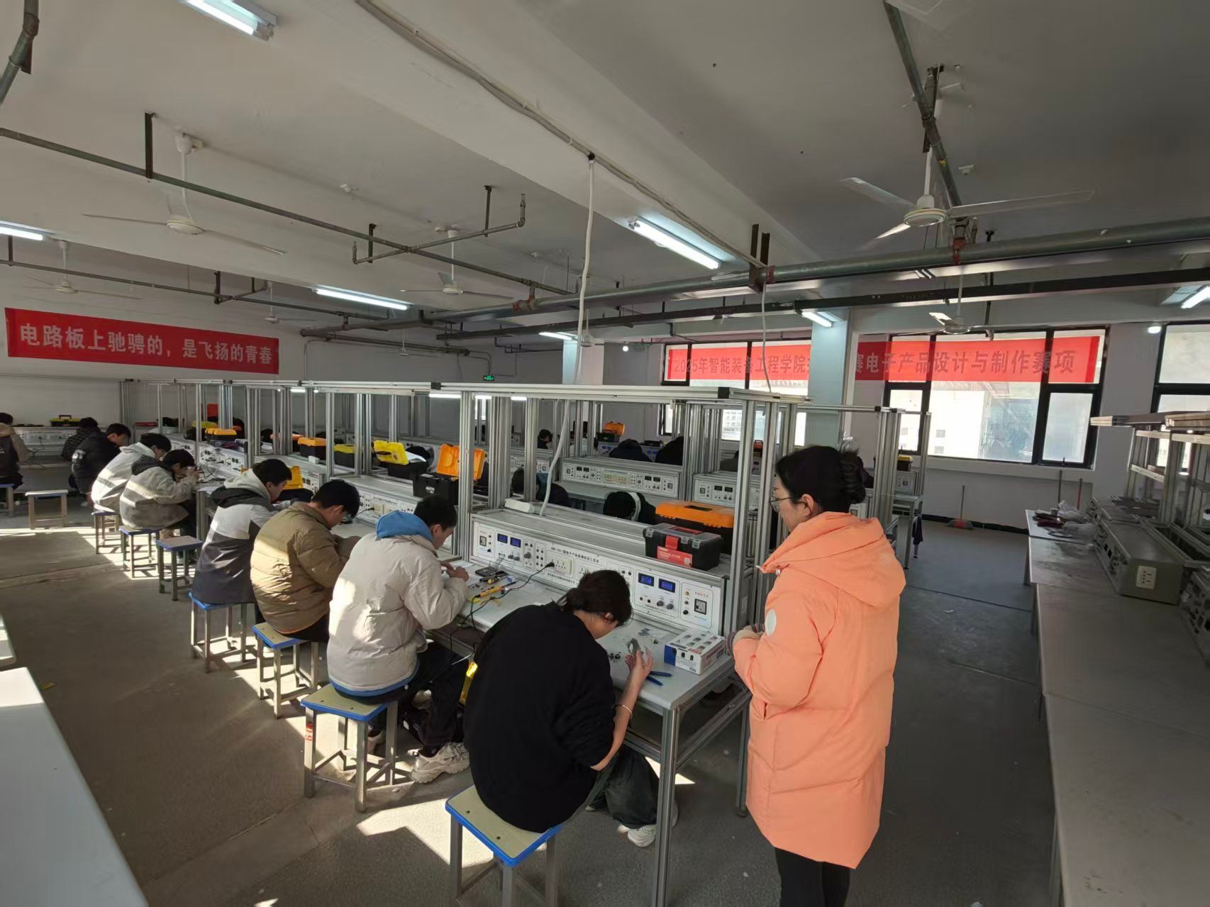 本次竞赛涵盖了电子产品设计与制作、智能电气控制、机器人系统集成应用技术、电路设计与装调、机器人建模、“三小”制作等多个项目。各参赛团队锐意创新、团结协作,展现出扎实的专业功底和良好的综合素养,生动体现了学院在装备制造与电子信息领域的育人成效。