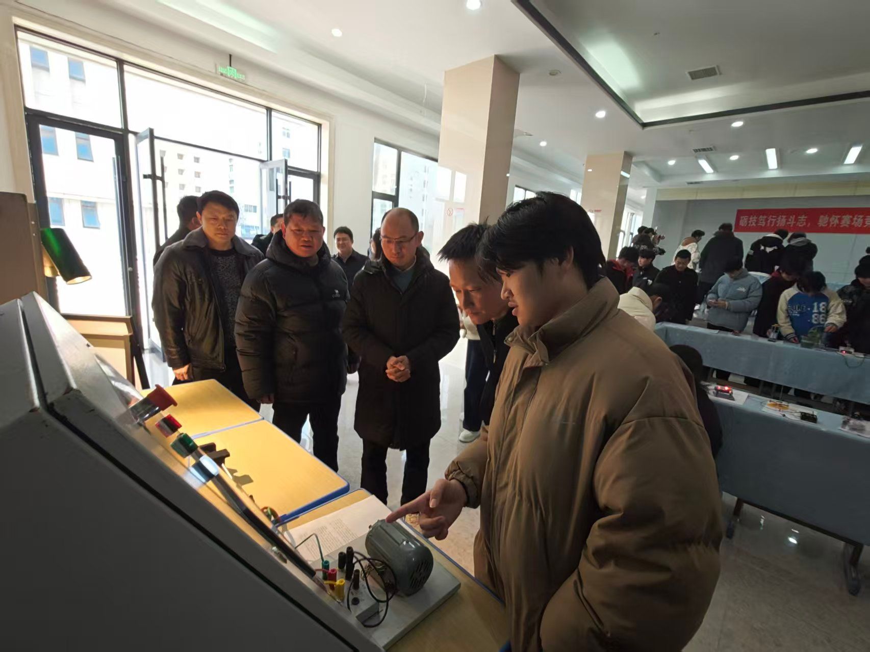 12月25日至26日,智能装备工程学院成功举办2025年学校技能竞赛节。竞赛期间,校长游振磊亲临现场指导,观摩学生操作,与参赛学生亲切交谈,并对同学们的创新思维与实践能力给予了充分肯定和鼓励。